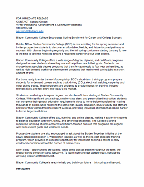 Bladen Community College Encourages Spring Enrollment for Career and College Success