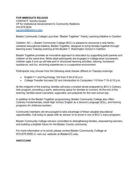 Bladen Community College Launches “Bladen Together” Family Learning Initiative in Clarkton