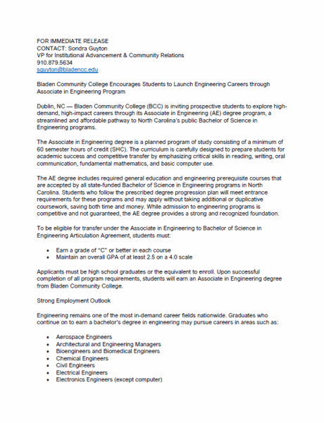 Bladen Community College Encourages Students to Launch Engineering Careers through Associate in Engineering Program