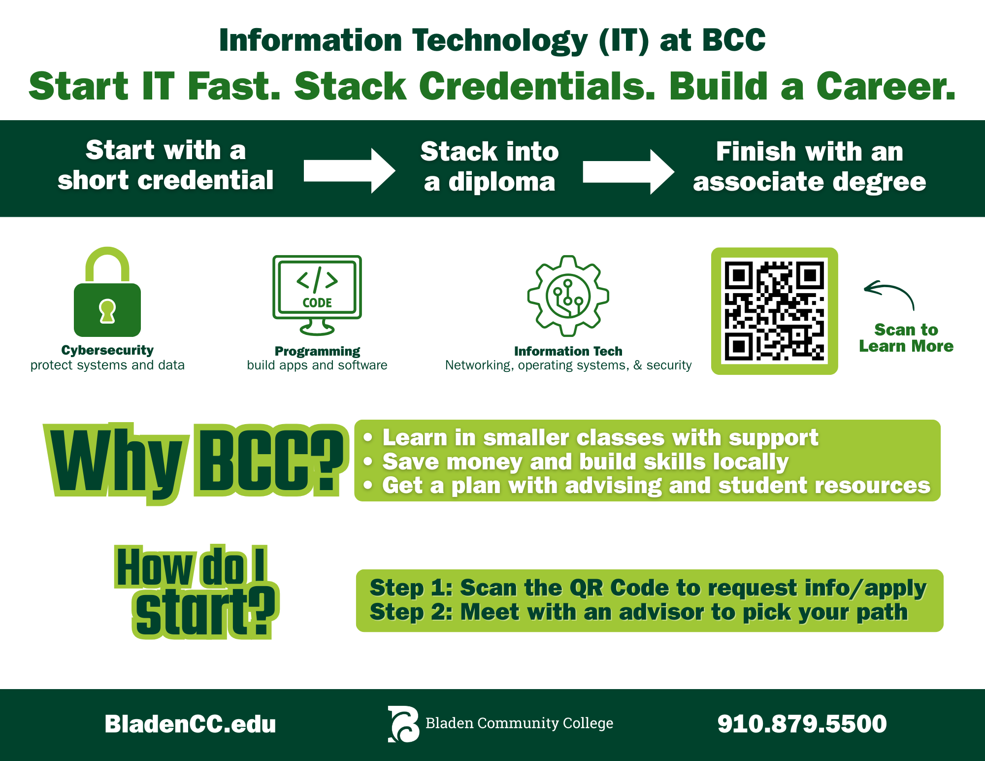 The Information Technology (IT) curriculum prepares graduates for employment in the technology sector as designers, testers, support technicians, system administrators, developers, or programmers who use computer software and/or hardware to design, process, implement and manage information systems in specialties such as database services, security, business intelligence, healthcare informatics and others depending on the technical path selected within this curriculum. Course work includes development of a student’s ability to create, store, communicate, exchange and use information to solve technical issues related to information support and services, interactive media, network systems, programming and software development, information security and other emerging technologies based on the selected area of study. Graduates should qualify for employment in entry-level positions with businesses, educational systems, and governmental agencies which rely on computer systems to design and manage information. The program will incorporate the competencies of industry-recognized certification exams.