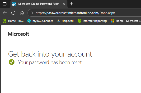 - Once your new password has been set, you will receive the following message: