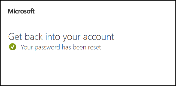 - Once your new password has been set, you will receive the following message: